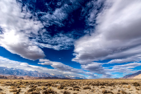A mesmerizing cloudscape over the Owens Valley and Owens Dry Lake, Eastern Sierra in California