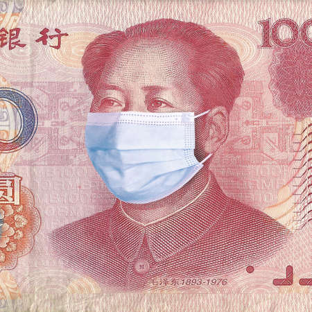 Yuan banknote with Mao Zedong in a medical mask.