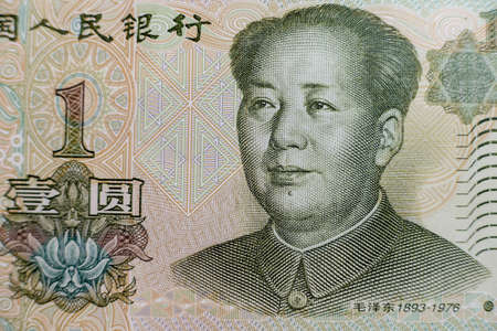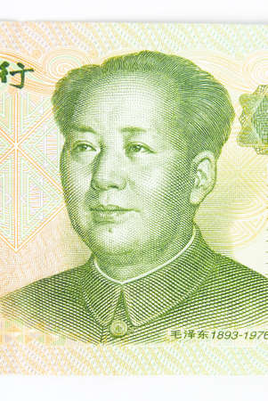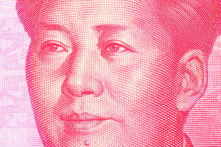 Portrait of Mao Zedong on China Paper Currency. Macro