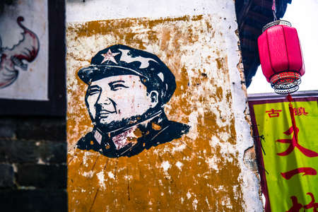 BEIJING - August 29 Mao Zedong portraits on the wall of Imperial Palace museum on August 29, 2011 in Beijing, china Mao Zedong was the first generation leaders of the people