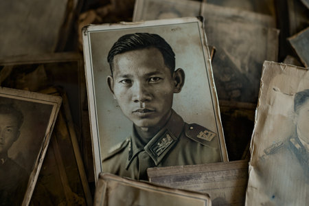 An old black and white picture capturing a Vietnam soldier in his military uniform, showing a historical moment.