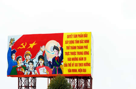 HO CHI MINH CITY, VIETNAM - DECEMBER 10, 2011 Communist propaganda posters in the streets of Ho Chi Minh City, 10 december 2011, Ho Chi Minh City, Vietnam