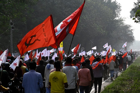 KOLKATA, INDIA – JANUARY 7: Yatra (Justice Rally) organized by Democratic Youth Federation of India (DYFI), youth wing of CPI(M) demands ‘Right to Work and Education’ at Brigade Parade Ground, on January 7, 2024 in Kolkata, India. (Photo by Samir Ja