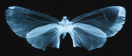 X-ray revealing the delicate structure of butterfly wings and intricate vein patterns