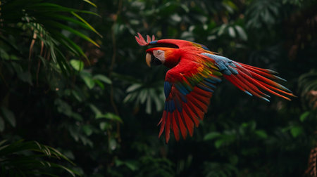 A Radiant Red Macaw Cutting Through the Air, Embodying the Spirit of Aerial Elegance.