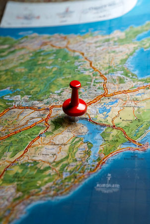 High-quality photo of a map with colorful pins marking must-visit destinations and route planning