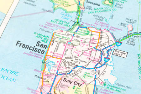 Travel destination pin points on a map with colorful thumbtacks and depth of field with select focus.