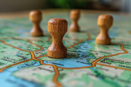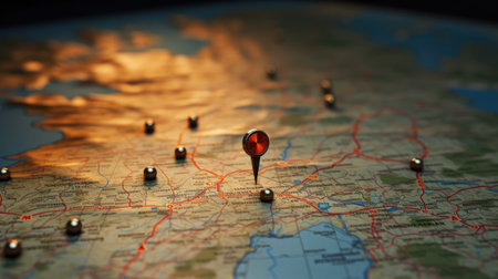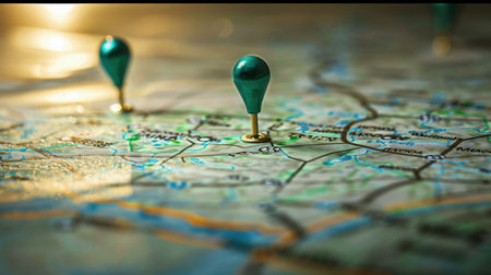 High-quality photo of a map with colorful pins marking must-visit destinations and route planning