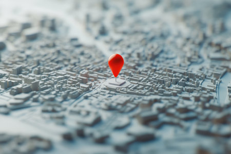 A minimalist and sleek image featuring a red location pin on a city map, perfect for navigation apps or travel services.