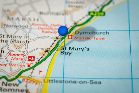 Blue Map Pin on Paper Map Showing St Mary's Bay