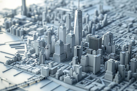Intricately detailed miniature 3d model of a modern urban city with skyscrapers