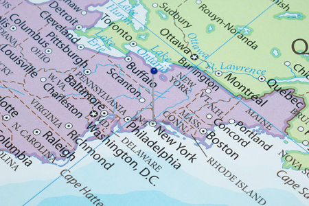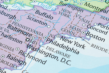 Closeup of a map showing part of united states of america with concentration on east coast, new york