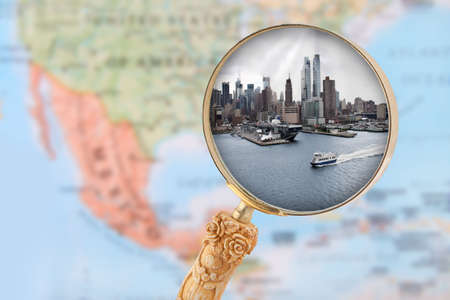 Magnifying Glass in front of a New York map