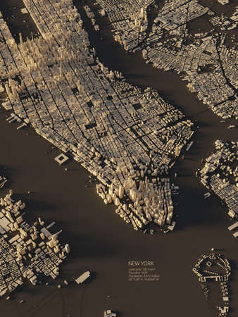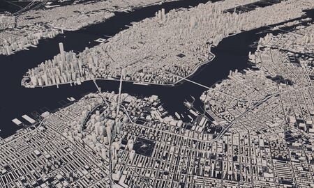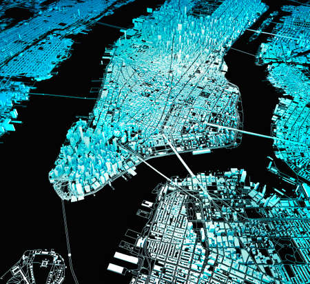 New York city map 3D Rendering. Aerial satellite view.