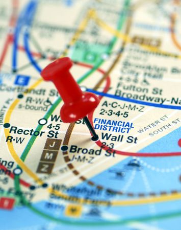 The red pin nailed on the Wall Street stop