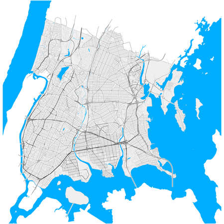 The Bronx, New York City, high resolution vector map with editable paths for Highways, minor driving ways and smaller paths. Major roads are underlined with a white stroke on grey background and blue shapes for water