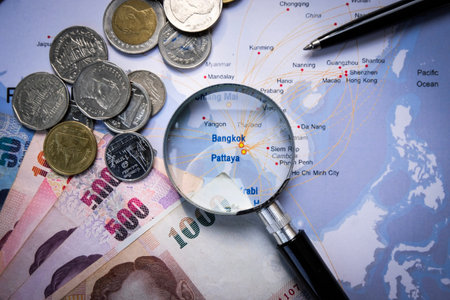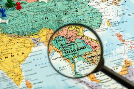 magnifier selective at Thailand map. - economic and travel concept.