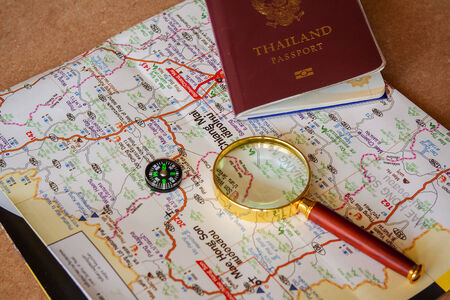Thailand passport and camera on the map for World travel and travel asia