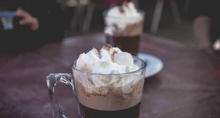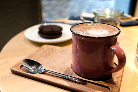 hot chocolate cocoa drinks on table in cafe