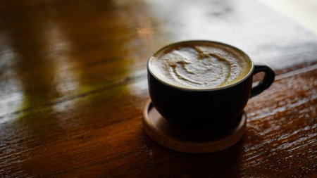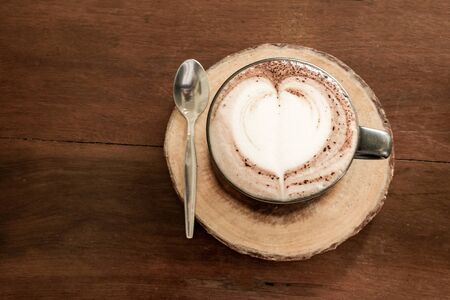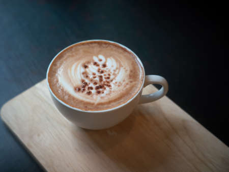 cup of coffee latte on the wood texture