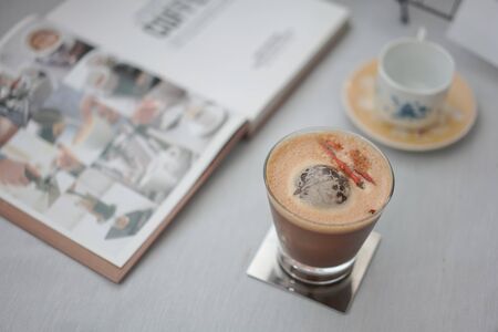 cappuccino or Latte ice coffee made from milk on the wood table in coffee shop
