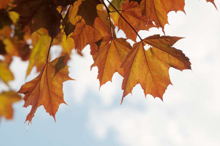 Close up of autumn maple leaves