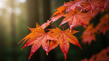 Exquisite Autumn Ambiance with Vibrant Japanese Maple Leaves Against a Serene Blurred Background