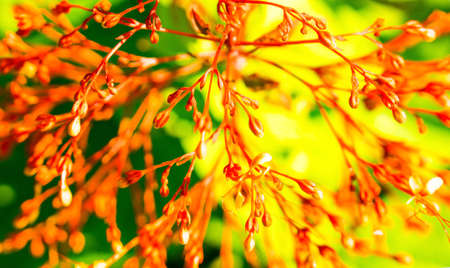Japanese maple flowers and samara. After the flowers bloom in spring, they attach propeller-shaped samara, and then they soar in the wind and fall to the ground to sprout.