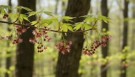 a maple branch with leaves and blossoms