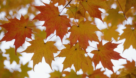 Vibrant autumn leaves showing shades of orange and red against a soft background in a peaceful outdoor setting