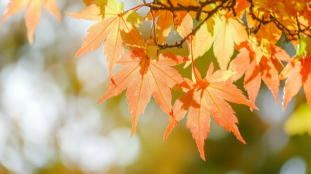 Stunning Autumn Leaves of Japanese Maple Tree Bathed in Warm Sunlight Against a Soft Background