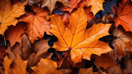 Vibrant autumn maple leaves with water droplets close up
