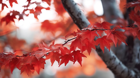 Captivating Autumn Serenity with Vibrant Japanese Maple Foliage and Bokeh-Filled Backgrounds