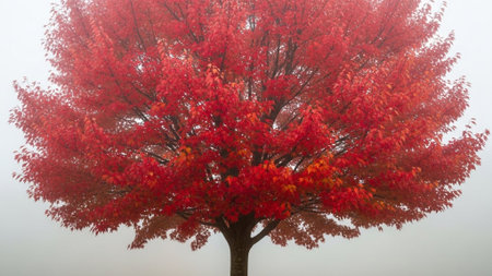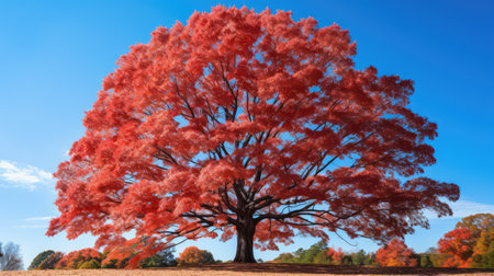 A stunning view of a red maple tree in autumn showcases vibrant leaves against a clear sky. This breathtaking scene captures the essence of seasonal change and natural beauty.