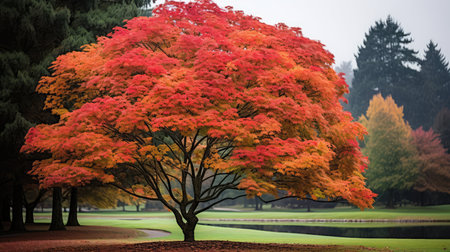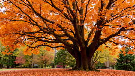 Vibrant autumn leaves highlight the beauty of a serene park in a colorful display during the fall season