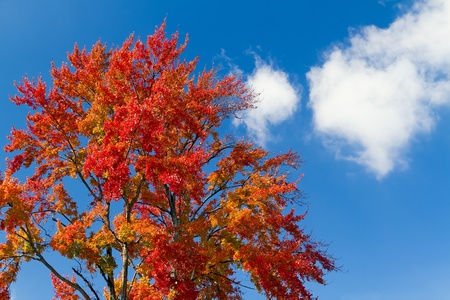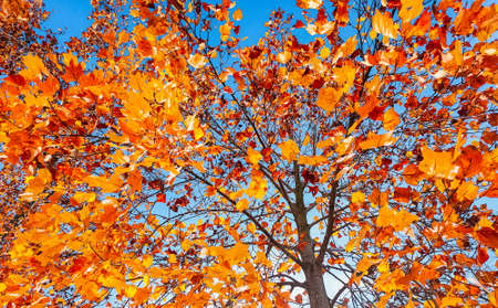 Autumn tree with nice and colorful orange leaves. Autumn maple leaves. Nature background in fall season.