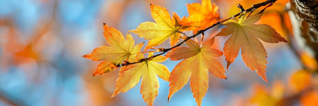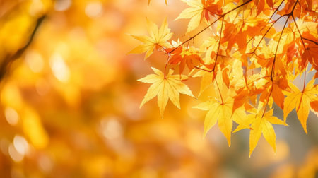Stunning Autumn Landscape Featuring Vibrant Golden Brown Japanese Maple Leaves and Foliage
