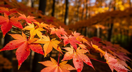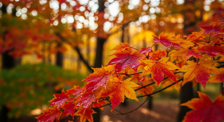 Captivating Autumn Serenity with Vibrant Japanese Maple Foliage and Bokeh-Filled Backgrounds