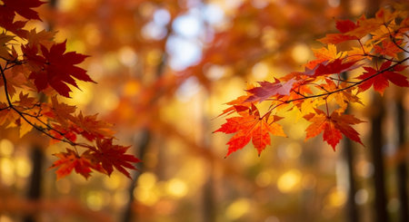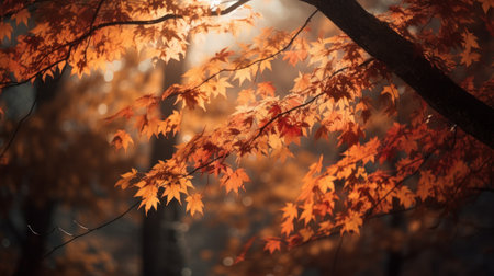 red autumn leaves on maple tree branch, created with generative ai