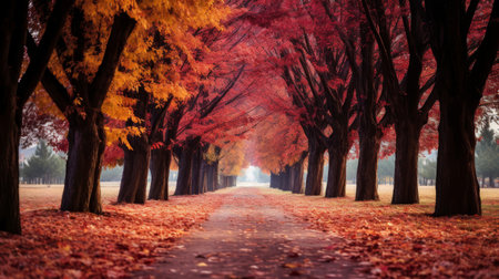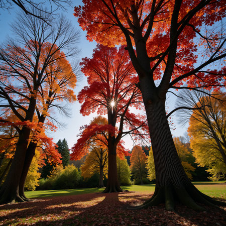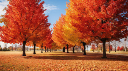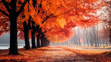 Vibrant autumn leaves highlight the beauty of a serene park in a colorful display during the fall season