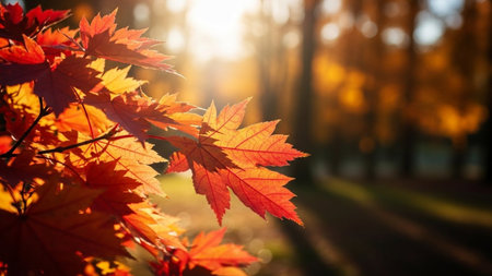 Autumn in the park with maple tree and sun in fall season