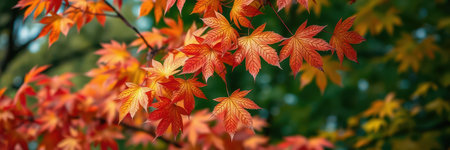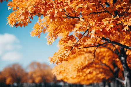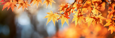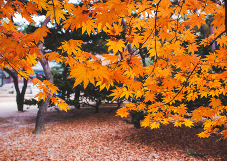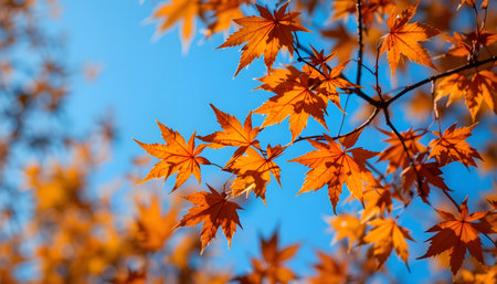 Stunning Autumn Landscape Featuring Vibrant Golden Brown Japanese Maple Leaves and Foliage