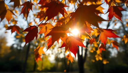 Vibrant autumn leaves in a serene park during a sunny afternoon walk