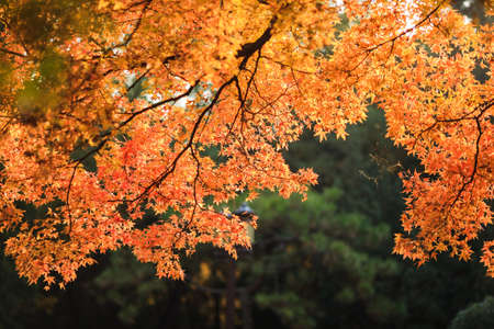 Close up of beautiful maple leaves in autumn sunny day in Taiwan with no people copy space.