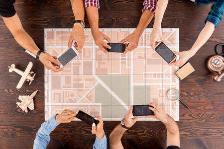 Group of People Traveling Destination Holiday Concept. Top View, Flat Lay