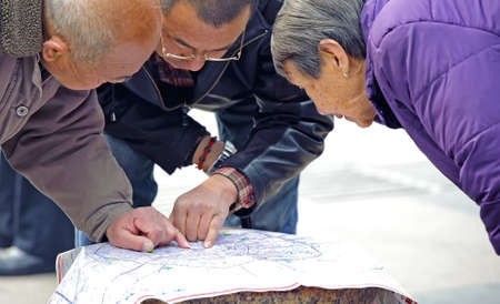 CHENGDU - FEB 7: A man to search the way on the map on a busy pedestrian shopping street in downtown during chinese new year on Feb 7, 2011 in Chengdu, China.
