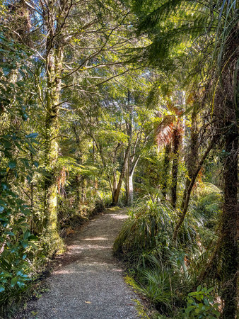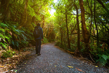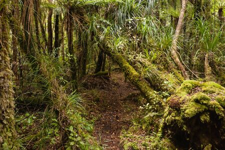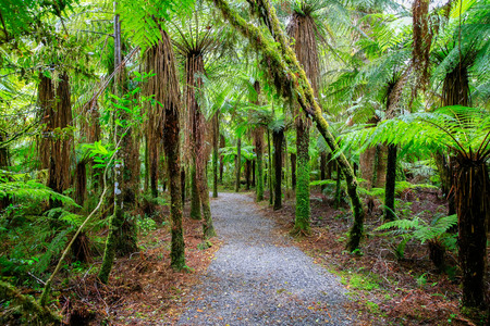 Walking trail in the rain forest of Westland National Park, South Island, New Zealand