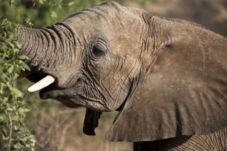 Side profile of an African elephant in the Welgevonden game reserve, South Africa.