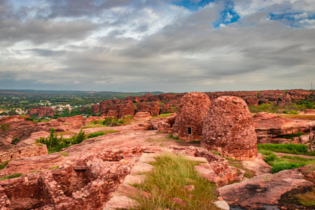 ancient fort architecture with amazing blue sky from flat angle shot is taken at badami karnataka india.