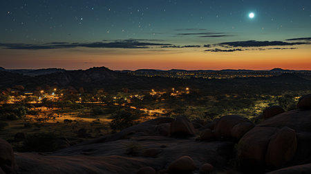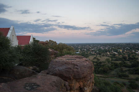 Sunset with Landscape and Cityscape seen from a Hill in Mochudi, Botswana, Africa